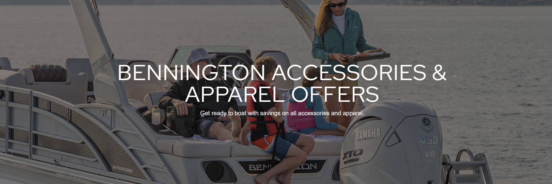 RESTRICTIONS: VALID FROM APRIL 6 – JULY 13, 2026, SPEND $100 (IN LOCAL CURRENCY - USD OR CAD) ON QUALIFYING BENNINGTON MARINE ACCESSORIES AND RECEIVE $20 (IN LOCAL CURRENCY - USD OR CAD) OFF PURCHASE. SPEND $250 (IN LOCAL CURRENCY - USD OR CAD) ON QUALIFYING BENNINGTON MARINE ACCESSORIES AND RECEIVE $50 (IN LOCAL CURRENCY - USD OR CAD) OFF PURCHASE. SPEND $500 (IN LOCAL CURRENCY - USD OR CAD) ON QUALIFYING BENNINGTON MARINE ACCESSORIES AND RECEIVE $100 (IN LOCAL CURRENCY - USD OR CAD) OFF PURCHASE. SPEND $1000 (IN LOCAL CURRENCY - USD OR CAD) ON QUALIFYING BENNINGTON MARINE ACCESSORIES AND RECEIVE $200 (IN LOCAL CURRENCY - USD OR CAD) OFF PURCHASE. THIS TIERED OFFER ON ACCESSORIES EXCLUDES THE (5) CLICK & CRUISE ACCESSORIES. RECEIVE 20% OFF MSRP (IN LOCAL CURRENCY - USD OR CAD) ON QUALIFYING BENNINGTON APPAREL. APPLICABLE TAX, SHIPPING AND HANDLING FEES DO NOT COUNT TOWARD MINIMUM REQUIRED PURCHASE AMOUNT. DISCOUNT IS APPLIED AFTER APPLICABLE TAX, SHIPPING AND HANDLING FEES ARE ADDED. APPLICABLE TAX, SHIPPING AND HANDLING FEES DO NOT QUALIFY FOR DISCOUNT AND ARE THE RESPONSIBILITY OF THE PURCHASING CONSUMER. OFFER IS VALID ONLINE AT BENNINGTONMARINE.COM, AND IN-STORE AT AUTHORIZED BENNINGTON MARINE DEALERSHIPS IN CANADA AND THE UNITED STATES. OFFERS CAN BE COMBINED WITH OTHER BENNINGTON (“PG&A”) OFFERS, COUPONS, DISCOUNTS OR PROMOTIONS, EXCLUDING BENNINGTON’S EMAIL SIGN-UP OFFER. WHILE SUPPLIES LAST. OFFER HAS NO CASH VALUE AND CANNOT BE APPLIED TO PAST TRANSACTIONS. THIS OFFER IS NOT REDEEMABLE FOR CASH OR GIFT CARDS. BENNINGTON MARINE, BENNINGTON MARINE DEALERS AND THEIR RESPECTIVE EMPLOYEES ARE NOT ELIGIBLE FOR THE DISCOUNT. NOT VALID ON NON-BENNINGTON MARINE PRODUCTS OR ON PURCHASES MADE BEFORE APRIL 6 OR AFTER JULY 13, 2026. OFFER SUBJECT TO AVAILABILITY WHILE SUPPLIES LAST; IN-STOCK ITEMS ONLY. RETURNS OF ANY PORTION OF THE PURCHASE WILL REQUIRE EQUAL FORFEITURE OF OFFER OR AMOUNT EQUAL TO OFFER. THIS OFFER MAY BE DISCONTINUED OR MODIFIED AT ANY TIME BY BENNINGTON MARINE. VOID WHERE PROHIBITED OR OTHERWISE RESTRICTED. CONDITIONS APPLY, SEE DEALER FOR DETAILS. BY SUBMITTING THIS COUPON WITH YOUR NAME AND EMAIL, YOU AUTHORIZE AND CONSENT TO BENNINGTON MARINE, AND ITS AFFILIATES, SUBSIDIARIES AND AUTHORIZED DEALERS CONTACTING YOU VIA PHONE, EMAIL, DIRECT MAIL AND OTHER FORMS OF COMMUNICATION ABOUT BENNINGTON MARINE, ITS PRODUCTS, OFFERS, OR MARKETING MATERIALS.